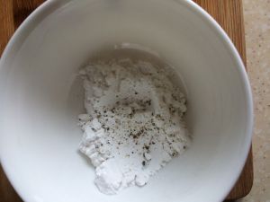 淀粉加一点点盐和黑胡椒碎,用勺子混合