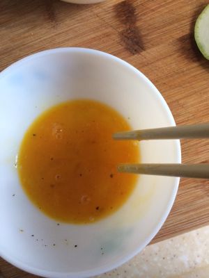 把第六步的西葫芦片放到热油锅煎至两面黄色