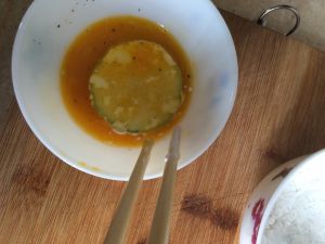 再放入鸡蛋,两面都沾上蛋液
