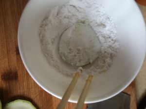 西葫芦片放淀粉,两面都沾上淀粉