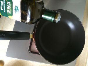 锅中倒少许橄榄油,用姜片蹭锅底,然后把姜片拿出