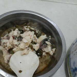 先放入鱼骨 煮熟 不要放鱼片 会煮化掉