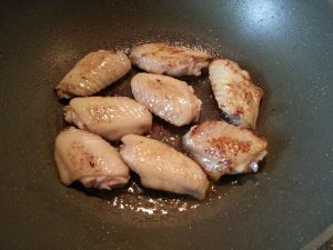 锅底少许油将鸡翅煎至两面金黄色。