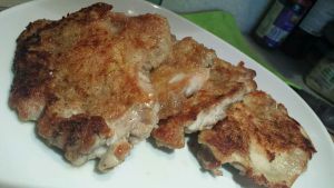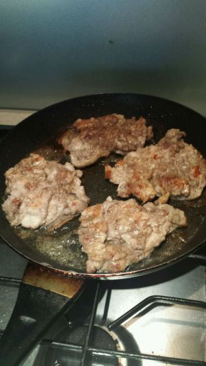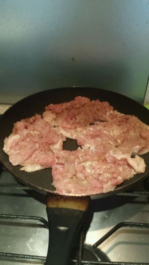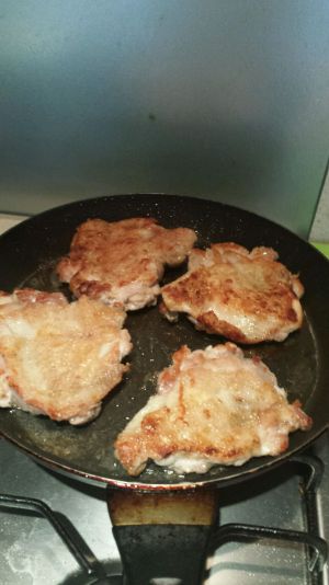 肉面煎了2分钟,基本就好了。我个人很喜欢吃脆的皮,所以又把鸡腿排翻到皮面朝下,剪了1分钟