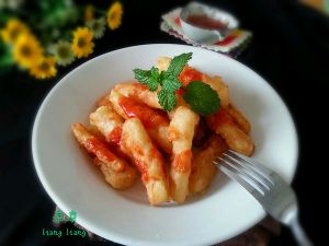 冬瓜条装盘浇入番茄沙司或佐着吃