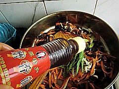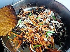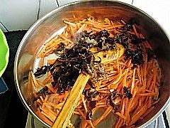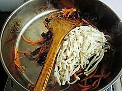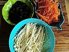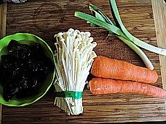 金针菇去掉老根洗净,胡萝卜切丝,木耳切丝。