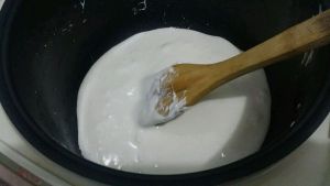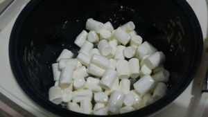 将棉花糖加热到这个程度后,离火(我是用电饭煲加热的,到这程度后就将内胆拿了出来)