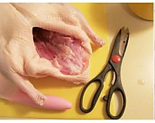 鸭子清洗干净,表皮上看得见油脂的通通剪掉,然后用厨房纸擦干。