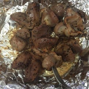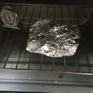 烤箱预热:上下火、中层、180度、10分钟;把腌制好的鸭肫用锡纸包好放人预热好的烤箱里,上下180度、中层、30分钟