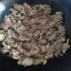 下入切薄片的舌头大火偏炒,炒到水份干就可以