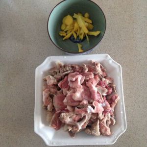 烫过水,和刮干净的舌头切薄片备用,姜片也备用