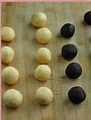 把南瓜面团分成每份20g、豆沙馅分成每份15g。