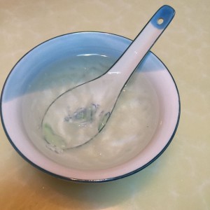 用少许开水将冰糖融化,然后放入一勺蒸好的燕窝。蒸好的燕窝冷藏起来,每次吃时都这样。很方便!