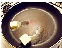 平底锅内加入黄油,中火加热至黄油融化,开始冒小泡。