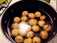 取一大锅水,加适量的盐,加入洗净的小洋芋,不用削皮,大火煮沸,煮20分钟左右直至能被叉子轻松刺入,然后取出沥干水备用。