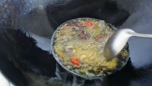 将油烧热,放入上步滤好的香料,小火煸十分钟,将油滤出,渣子倒按。