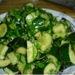 加入盐少许(多了就不好吃了,一点就可以)。然后倒入醋,淋上芝麻油,放入香菜拌均