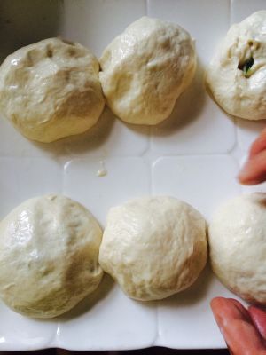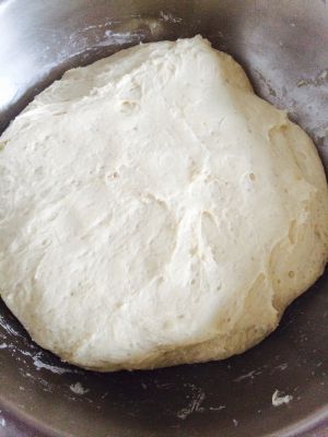 面粉两碗,放一平勺盐,一大勺酵母,和匀…醒一到两个小时