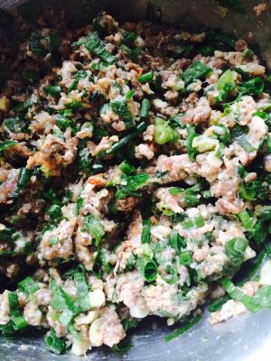 牛肉馅放葱花,放奥尔良粉,放盐,油即可