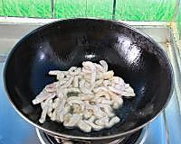 10.炒锅烧热后放入10克油,把腌制后的里脊肉入锅