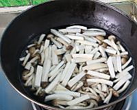 16.把焯过水的杏鲍菇、蟹味菇、竹笋放入锅里,焖煮五分钟
