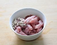 6.里脊肉加淀粉、盐、料酒