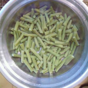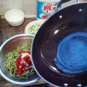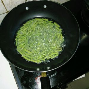 豆角焯水至熟透。