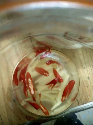 根据自己的喜好在瓶子里放入适量辣椒,姜,白醋