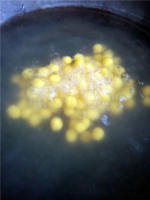 锅里加水烧开,放入糯米小圆子;我喜欢喝酒酿汤,所以水放得有点多;