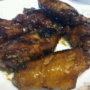 锅中热油,鸡翅煎至金黄色,下葱姜翻一翻,倒入可乐,沒过鸡翅,再倒入一点老抽上色,十分钟后大火收汁即可。