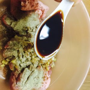 混合后在猪肉上抹匀。