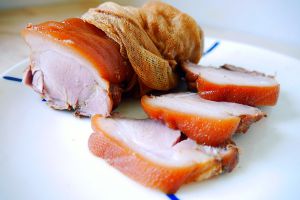 第二天取出打开纱布,切片即可享用,如果不够味可以用生抽、香油、少量醋调制蘸料。