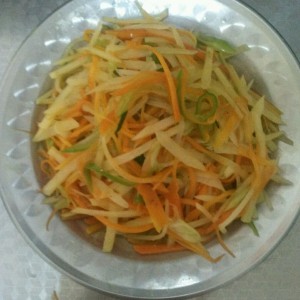 土豆,胡萝卜,青椒,切丝,葱,姜,切碎。