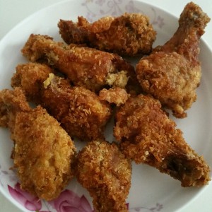 ❤鸡翅根过糊,撒干粉,蘸面包糠入锅炸熟,注意油温5-6成热,出锅置于吸油纸上吸油❤