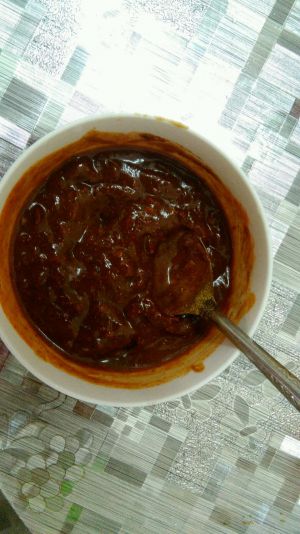 再加入和甜面酱一样比例的水,搅拌均匀即可,