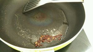 现在是炒酱,炒香后,放入一勺白糖,一勺生抽搅拌均匀即可