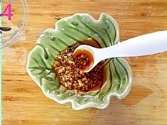 取姜蒜蓉、香油、香醋、生抽、糖、辣椒油拌匀成调味汁;