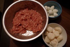 猪肉羊肝荸荠馍花大肉丸加鹌鹑蛋做法步骤
