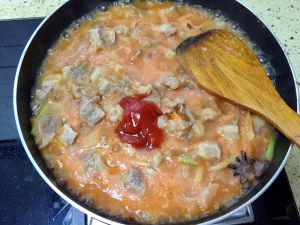 如果觉得味道不够可以再放少许番茄酱,同时可以放入少量冰糖调味,一点点就好啦,不要放多了