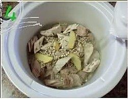 将姜片、薏米仁、莲藕、排骨放入慢炖锅,一次加入盖过所有材料的水,煲3小时以上,出锅前加适量盐调味即可。