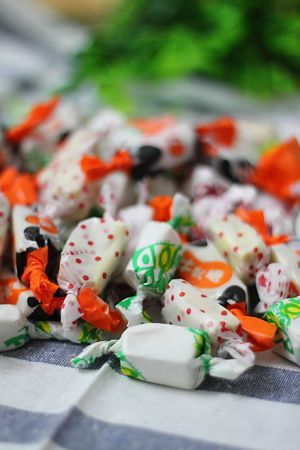 改刀切成2~3cm左右长的小块,最后用糖纸包裹住