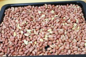 生花生米放150度预热好的烤箱中上层烤18分钟左右