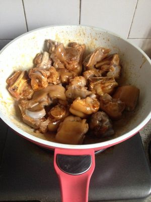 放入沥干的猪蹄进行翻炒,确保每一块都均匀上色。