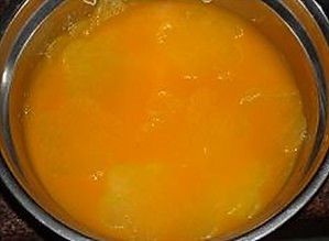把烫过得冬瓜片,放进冰冻的橙汁里泡着,放进冰箱冷藏至冬瓜片完全吸收了橙汁就可以了。