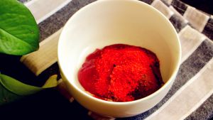 调制酱料:一勺韩式辣酱+一勺韩式大酱+一勺辣椒粉在一起充分调匀