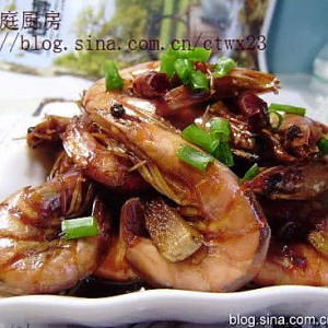 大火收浓汁水,加味精翻炒均匀,汁水裹在虾上撒上葱花即成