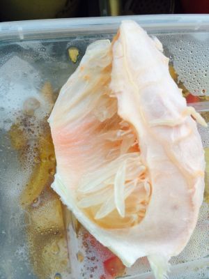 用盐水浸泡柚子,泡几分钟后再用盐搓搓皮,再用开水多洗几遍,等晾凉了,把水分挤干!可以削皮可以不削皮