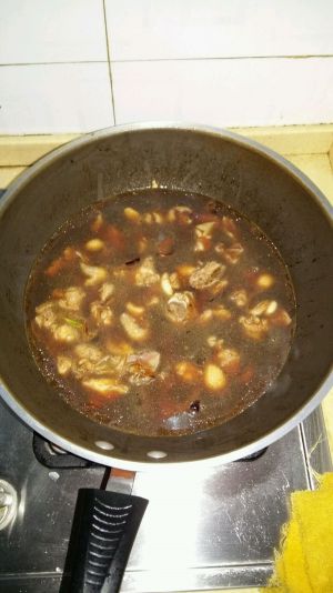 然后添水,水要没过鸡。盖上锅盖炖开。