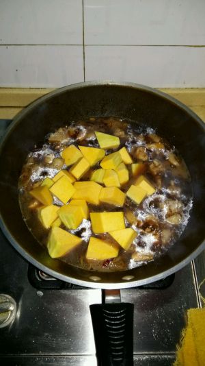 炖开后放入切好的南瓜,再盖上锅盖炖