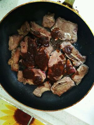 翻面后加入黑椒汁。这里罗嗦下每个品牌的黑椒汁味道多少还是有区别。有的偏辣,有的偏蒜味,还有需要稀释。平时用李锦记得就可以。我个人偏爱泰国的或者亨氏。